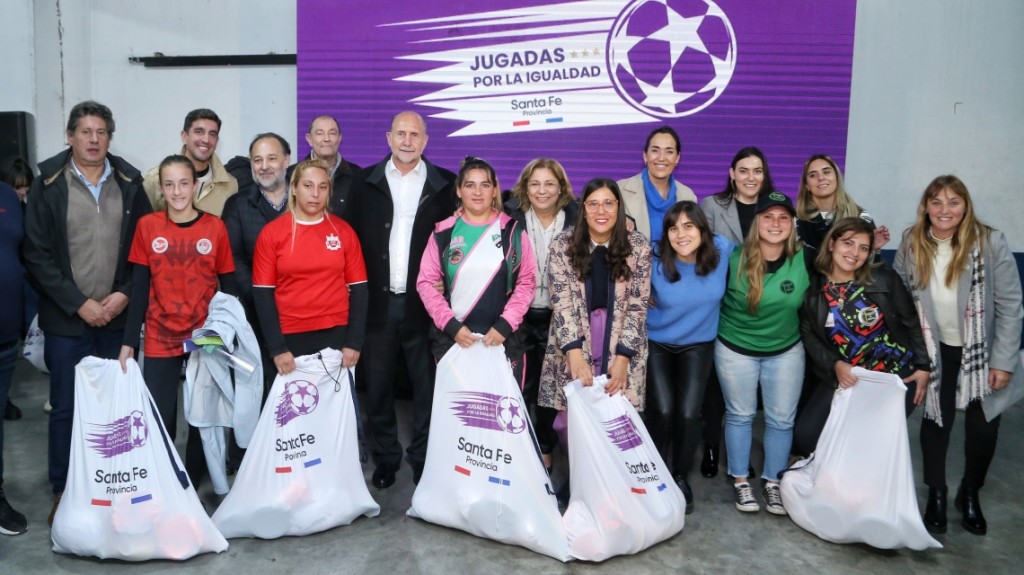 El gobernador de la provincia, Omar Perotti, entregó este viernes kits de fútbol a clubes que compiten en la Liga Rosarina, en el marco del programa “Jugadas por la igualdad”, que tiene como objetivo reconocer y potenciar a los equipos de fútbol femenino de toda la provincia.