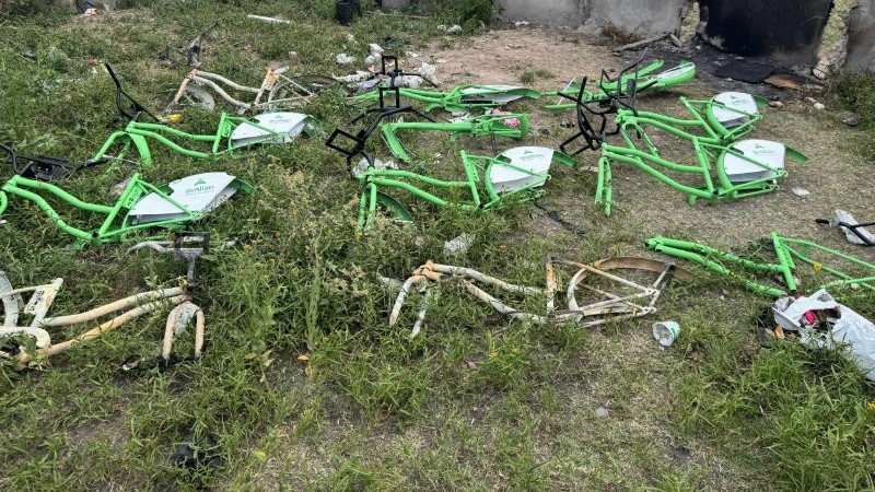 En la tarde del domingo, efectivos del Comando Radioeléctrico encontraron 13 cuadros de bicicletas públicas abandonados en un terreno baldío ubicado en las inmediaciones de Felipe Moré y Pasaje 1.821, en la zona oeste de la ciudad. Durante el operativo, tres de los cuadros fueron identificados pese a estar parcialmente quemados, ya que aún conservaban su numeración.