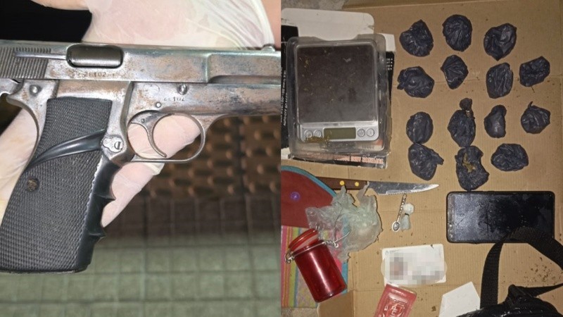 La policía secuestró una pistola 9 milímetros, bochitas de droga y una balanza en el operativo. Un adolescente de 15 años fue liberado.