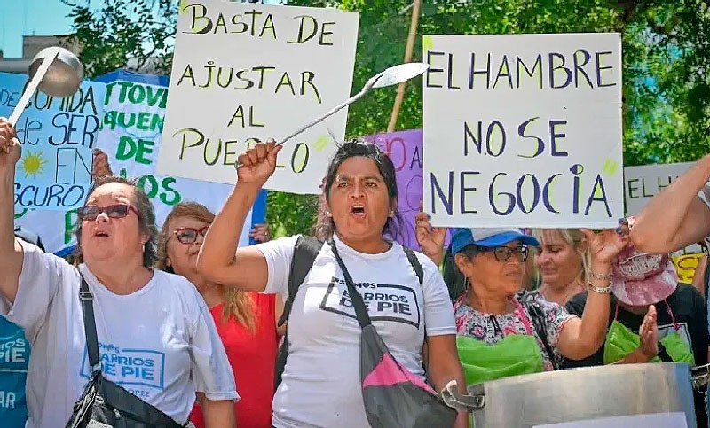 La organización social protesta por la escasez de alimentos en comedores comunitarios y rechaza las medidas económicas del presidente Javier Milei. Piden una nueva Ley de Emergencia Alimentaria.