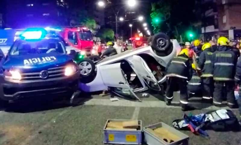 En la noche del domingo, un incidente vial impactante ocurrió en la intersección de Avenida Francia y Rioja, protagonizado por un vehículo del Comando Radioeléctrico y una camioneta Nissan March. El patrullero, que se dirigía a Cafferata y Santa Fe en respuesta a un llamado al 911, colisionó violentamente con la camioneta, causando su vuelco y quedando con las ruedas para arriba.