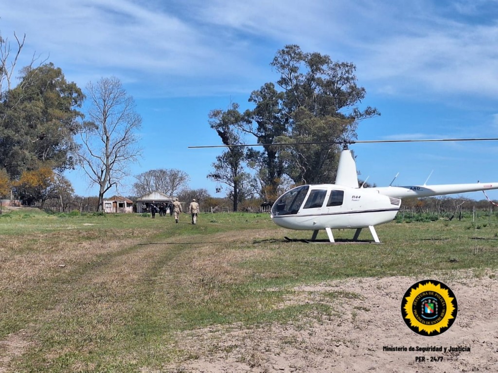 Este Jueves, tras el llamado oportuno de un productor ganadero de la zona de Gualeguaychú que había sido víctima de robo de unos novillos, y el mismo productor en horas de la mañana mientras sobrevolaba en un Helicóptero su Estancia, la cual se ubica a la vera de la Autovía Nacional N° 14 en busca de indicios junto con los Brigadistas, observa de manera sospechosa salir con dirección hacia la arteria vial a una camioneta de color blanca, la cual había estado ubicada en un monte en inmediaciones a su campo.