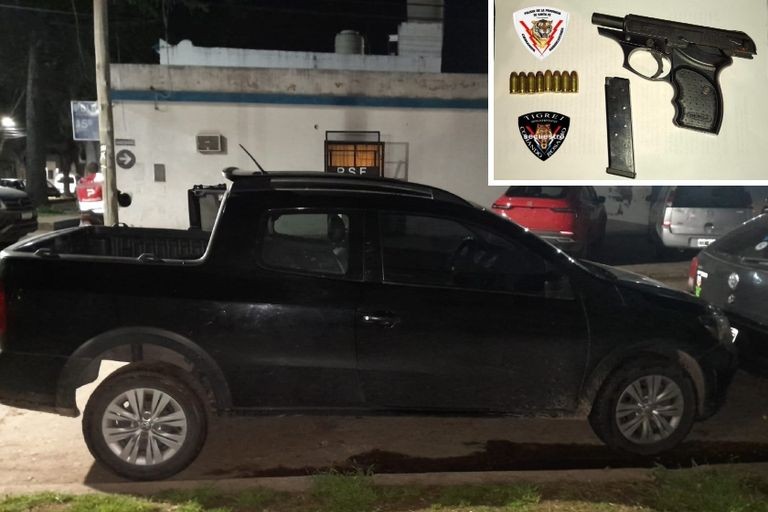 En el interior viajaban Darío Nicolás F. (46) y Luis Pablo R. (33), quienes fueron identificados y demorados en el lugar. La policía constató que iban acompañados por una menor y, tras una requisa, secuestró una pistola calibre 380 con municiones y una suma cercana a los 750.000 pesos.