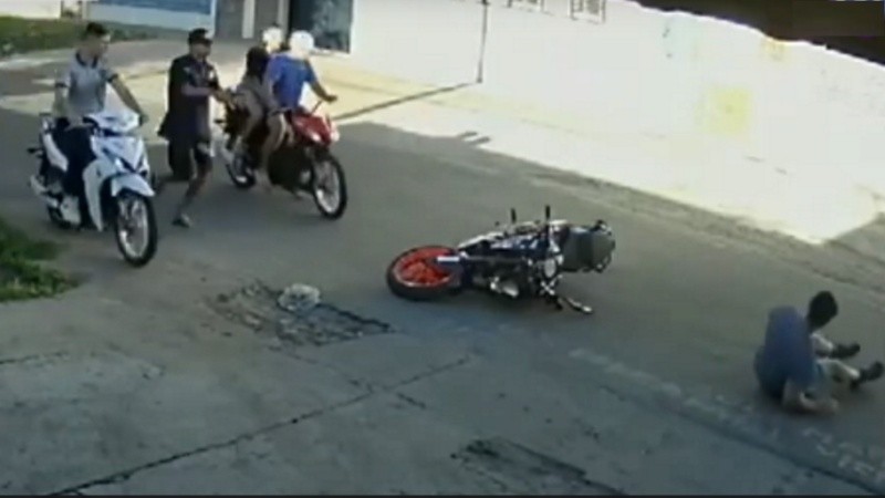 Cuatro delincuentes armados abordaron a un vecino de barrio Las Delicias en Pueyrredón al 5300, apuntándolo con un arma para robarle la moto. Durante el asalto, dispararon al aire, amenazando también a un chofer de colectivo. Las cámaras de la zona capturaron el suceso y mostraron la dificultad de los ladrones para huir con el vehículo robado.