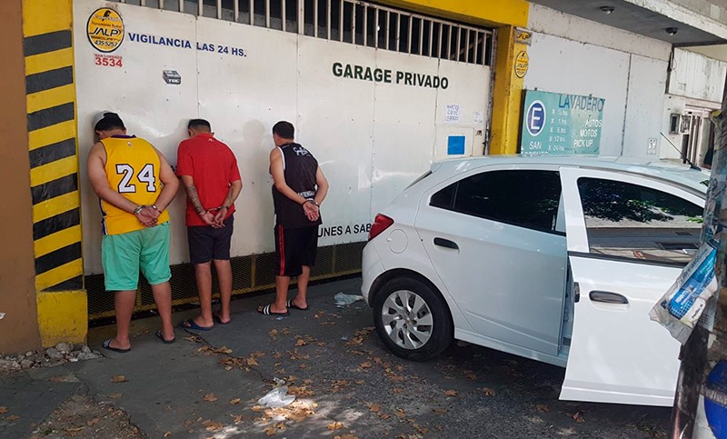 Tres individuos provenientes de Tucumán fueron arrestados en el macrocentro de Rosario luego de ser avistados hablando sobre un posible robo. La policía encontró en su posesión un inhibidor de señal de vehículos y una carta de extorsión.